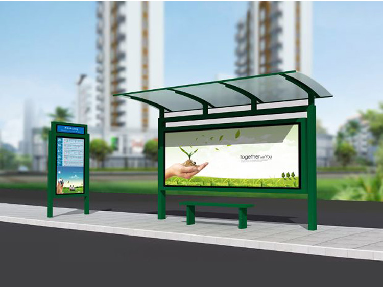 公交車候車亭一般是與公交站牌相配套的,為方便公交乘客候車時(shí)遮陽(yáng)、防雨等,在車站、道路兩旁或綠化帶的港灣式公交?空旧辖ㄔO(shè)的交通設(shè)施。由于城市公交的日益發(fā)達(dá),候車亭已發(fā)展成為城市一個(gè)不可或缺的重要組成部分,設(shè)計(jì)精美的候車亭也成為了城市一道美麗的風(fēng)景。 一般候車亭棚體主要頂棚、立柱、頂弓、廣告燈箱和坐凳組成,也有用隔板來代替廣告燈箱的。
