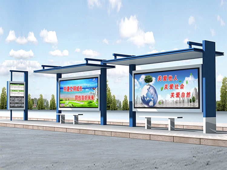 公交車候車亭一般是與公交站牌相配套的,為方便公交乘客候車時遮陽、防雨等,在車站、道路兩旁或綠化帶的港灣式公交?空旧辖ㄔO(shè)的交通設(shè)施。由于城市公交的日益發(fā)達(dá),候車亭已發(fā)展成為城市一個不可或缺的重要組成部分,設(shè)計(jì)精美的候車亭也成為了城市一道美麗的風(fēng)景。 一般候車亭棚體主要頂棚、立柱、頂弓、廣告燈箱和坐凳組成,也有用隔板來代替廣告燈箱的。