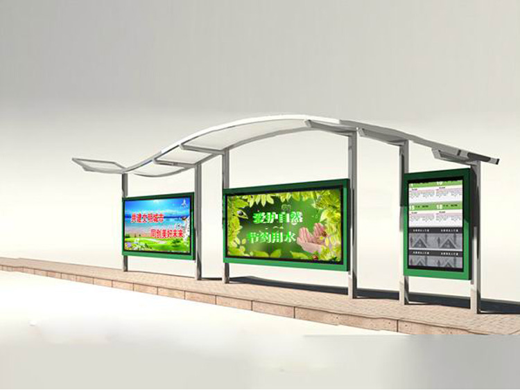 公交車候車亭一般是與公交站牌相配套的,為方便公交乘客候車時遮陽、防雨等,在車站、道路兩旁或綠化帶的港灣式公交停靠站上建設(shè)的交通設(shè)施。由于城市公交的日益發(fā)達,候車亭已發(fā)展成為城市一個不可或缺的重要組成部分,設(shè)計精美的候車亭也成為了城市一道美麗的風景。 一般候車亭棚體主要頂棚、立柱、頂弓、廣告燈箱和坐凳組成,也有用隔板來代替廣告燈箱的。