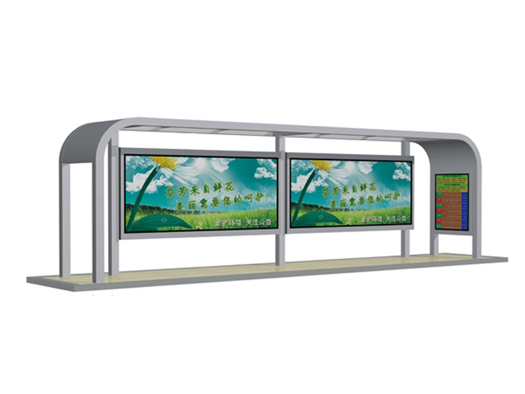 公交車候車亭一般是與公交站牌相配套的,為方便公交乘客候車時遮陽、防雨等,在車站、道路兩旁或綠化帶的港灣式公交?空旧辖ㄔO的交通設施。由于城市公交的日益發(fā)達,候車亭已發(fā)展成為城市一個不可或缺的重要組成部分,設計精美的候車亭也成為了城市一道美麗的風景。 一般候車亭棚體主要頂棚、立柱、頂弓、廣告燈箱和坐凳組成,也有用隔板來代替廣告燈箱的。