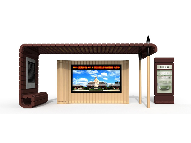 公交車(chē)候車(chē)亭一般是與公交站牌相配套的,為方便公交乘客候車(chē)時(shí)遮陽(yáng)、防雨等,在車(chē)站、道路兩旁或綠化帶的港灣式公交停靠站上建設(shè)的交通設(shè)施。由于城市公交的日益發(fā)達(dá),候車(chē)亭已發(fā)展成為城市一個(gè)不可或缺的重要組成部分,設(shè)計(jì)精美的候車(chē)亭也成為了城市一道美麗的風(fēng)景。 一般候車(chē)亭棚體主要頂棚、立柱、頂弓、廣告燈箱和坐凳組成,也有用隔板來(lái)代替廣告燈箱的。