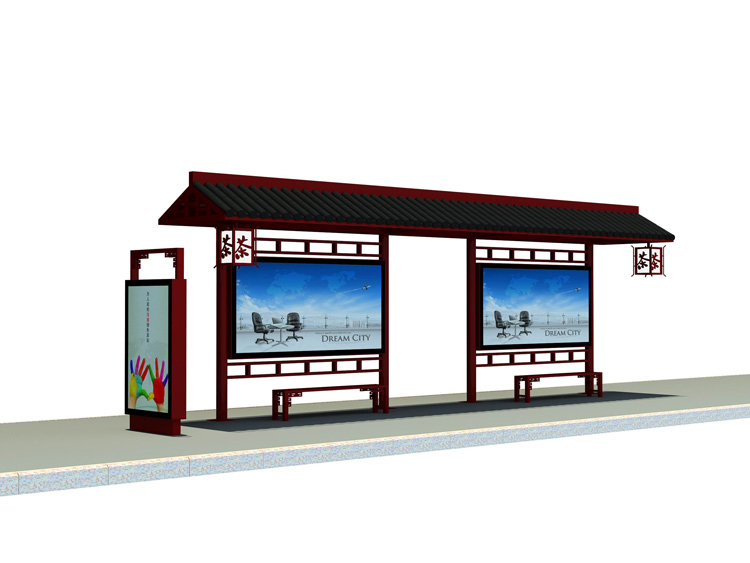 公交車候車亭一般是與公交站牌相配套的,為方便公交乘客候車時遮陽、防雨等,在車站、道路兩旁或綠化帶的港灣式公交?空旧辖ㄔO(shè)的交通設(shè)施。由于城市公交的日益發(fā)達,候車亭已發(fā)展成為城市一個不可或缺的重要組成部分,設(shè)計精美的候車亭也成為了城市一道美麗的風景。 一般候車亭棚體主要頂棚、立柱、頂弓、廣告燈箱和坐凳組成,也有用隔板來代替廣告燈箱的。