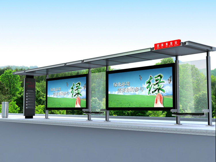 公交車候車亭一般是與公交站牌相配套的,為方便公交乘客候車時(shí)遮陽(yáng)、防雨等,在車站、道路兩旁或綠化帶的港灣式公交?空旧辖ㄔO(shè)的交通設(shè)施。由于城市公交的日益發(fā)達(dá),候車亭已發(fā)展成為城市一個(gè)不可或缺的重要組成部分,設(shè)計(jì)精美的候車亭也成為了城市一道美麗的風(fēng)景。 一般候車亭棚體主要頂棚、立柱、頂弓、廣告燈箱和坐凳組成,也有用隔板來(lái)代替廣告燈箱的。