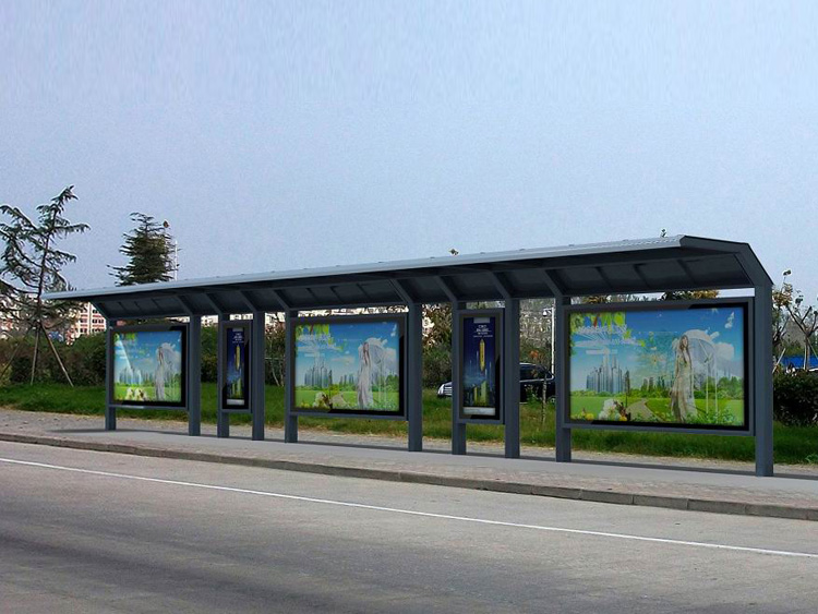 公交車候車亭一般是與公交站牌相配套的,為方便公交乘客候車時(shí)遮陽(yáng)、防雨等,在車站、道路兩旁或綠化帶的港灣式公交?空旧辖ㄔO(shè)的交通設(shè)施。由于城市公交的日益發(fā)達(dá),候車亭已發(fā)展成為城市一個(gè)不可或缺的重要組成部分,設(shè)計(jì)精美的候車亭也成為了城市一道美麗的風(fēng)景。 一般候車亭棚體主要頂棚、立柱、頂弓、廣告燈箱和坐凳組成,也有用隔板來(lái)代替廣告燈箱的。