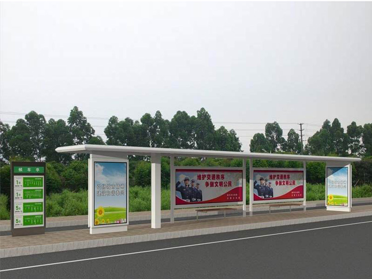 公交車候車亭一般是與公交站牌相配套的,為方便公交乘客候車時(shí)遮陽、防雨等,在車站、道路兩旁或綠化帶的港灣式公交?空旧辖ㄔO(shè)的交通設(shè)施。由于城市公交的日益發(fā)達(dá),候車亭已發(fā)展成為城市一個(gè)不可或缺的重要組成部分,設(shè)計(jì)精美的候車亭也成為了城市一道美麗的風(fēng)景。 一般候車亭棚體主要頂棚、立柱、頂弓、廣告燈箱和坐凳組成,也有用隔板來代替廣告燈箱的。