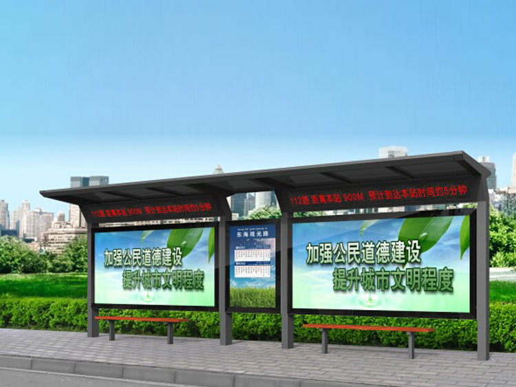 公交車候車亭一般是與公交站牌相配套的,為方便公交乘客候車時遮陽、防雨等,在車站、道路兩旁或綠化帶的港灣式公交停靠站上建設的交通設施。由于城市公交的日益發(fā)達,候車亭已發(fā)展成為城市一個不可或缺的重要組成部分,設計精美的候車亭也成為了城市一道美麗的風景。 一般候車亭棚體主要頂棚、立柱、頂弓、廣告燈箱和坐凳組成,也有用隔板來代替廣告燈箱的。