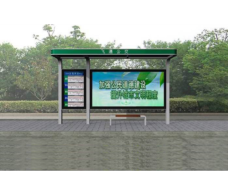 公交車候車亭一般是與公交站牌相配套的,為方便公交乘客候車時遮陽、防雨等,在車站、道路兩旁或綠化帶的港灣式公交?空旧辖ㄔO(shè)的交通設(shè)施。由于城市公交的日益發(fā)達,候車亭已發(fā)展成為城市一個不可或缺的重要組成部分,設(shè)計精美的候車亭也成為了城市一道美麗的風(fēng)景。 一般候車亭棚體主要頂棚、立柱、頂弓、廣告燈箱和坐凳組成,也有用隔板來代替廣告燈箱的。
