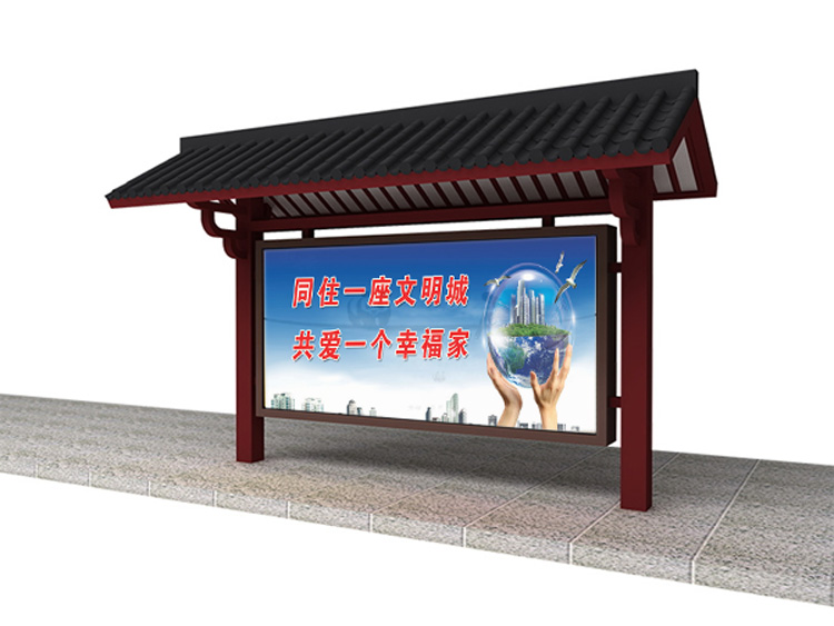 公交車候車亭一般是與公交站牌相配套的,為方便公交乘客候車時(shí)遮陽(yáng)、防雨等,在車站、道路兩旁或綠化帶的港灣式公交?空旧辖ㄔO(shè)的交通設(shè)施。由于城市公交的日益發(fā)達(dá),候車亭已發(fā)展成為城市一個(gè)不可或缺的重要組成部分,設(shè)計(jì)精美的候車亭也成為了城市一道美麗的風(fēng)景。 一般候車亭棚體主要頂棚、立柱、頂弓、廣告燈箱和坐凳組成,也有用隔板來(lái)代替廣告燈箱的。