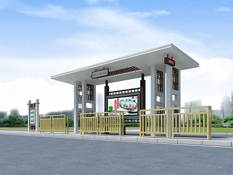 公交車候車亭一般是與公交站牌相配套的,為方便公交乘客候車時遮陽、防雨等,在車站、道路兩旁或綠化帶的港灣式公交?空旧辖ㄔO的交通設施。由于城市公交的日益發(fā)達,候車亭已發(fā)展成為城市一個不可或缺的重要組成部分,設計精美的候車亭也成為了城市一道美麗的風景。 一般候車亭棚體主要頂棚、立柱、頂弓、廣告燈箱和坐凳組成,也有用隔板來代替廣告燈箱的。