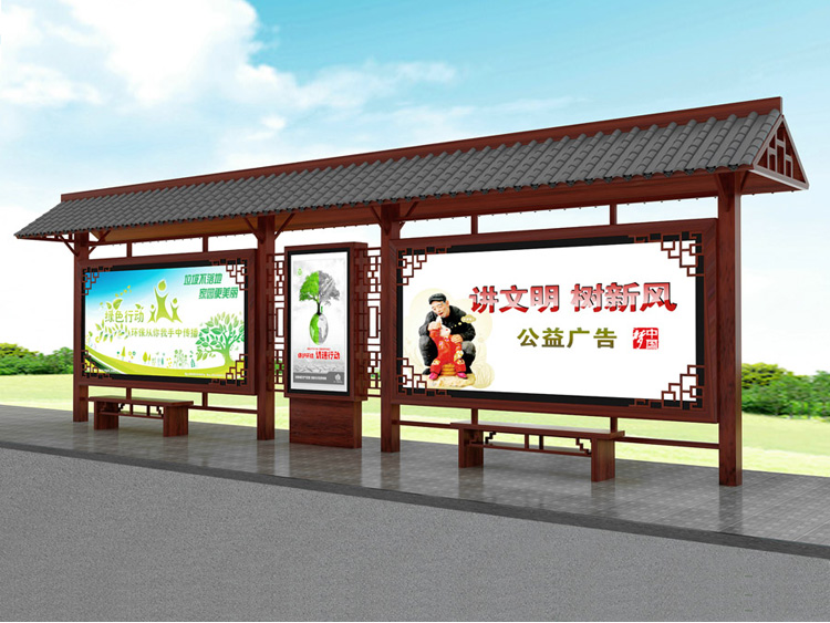 公交車候車亭一般是與公交站牌相配套的,為方便公交乘客候車時遮陽、防雨等,在車站、道路兩旁或綠化帶的港灣式公交停靠站上建設(shè)的交通設(shè)施。由于城市公交的日益發(fā)達,候車亭已發(fā)展成為城市一個不可或缺的重要組成部分,設(shè)計精美的候車亭也成為了城市一道美麗的風景。 一般候車亭棚體主要頂棚、立柱、頂弓、廣告燈箱和坐凳組成,也有用隔板來代替廣告燈箱的。